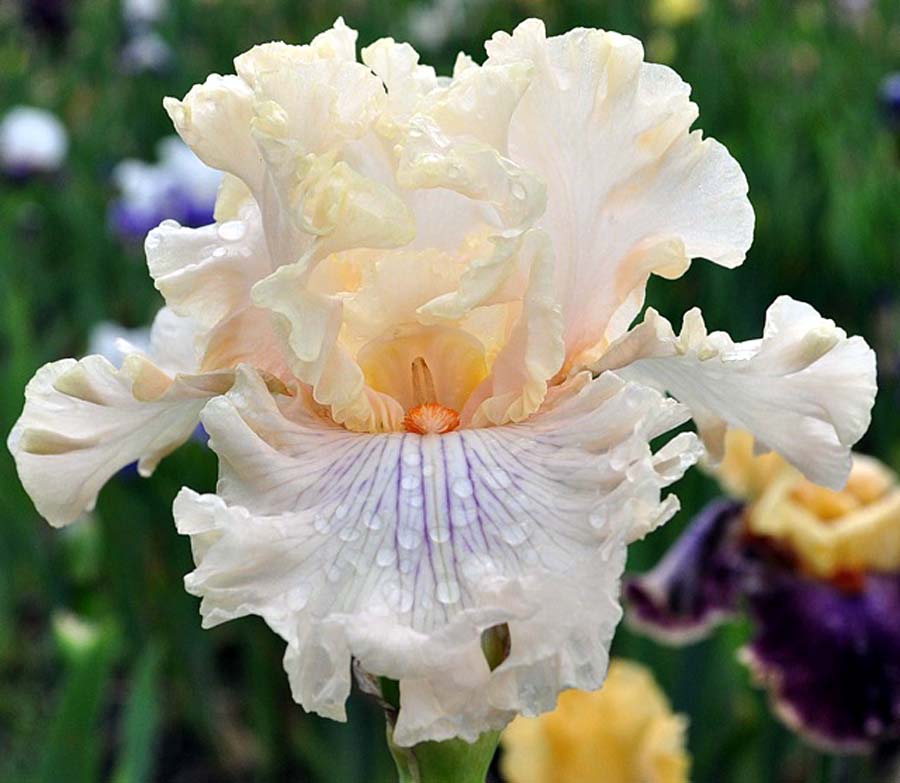 L’iris germanica “Matters of the heart” ha vessilli color pesca crema, ali color lavanda venato al centro, barbe color mandarino, profumo leggermente dolce. Altezza 97 cm. Fioritura intermedia.