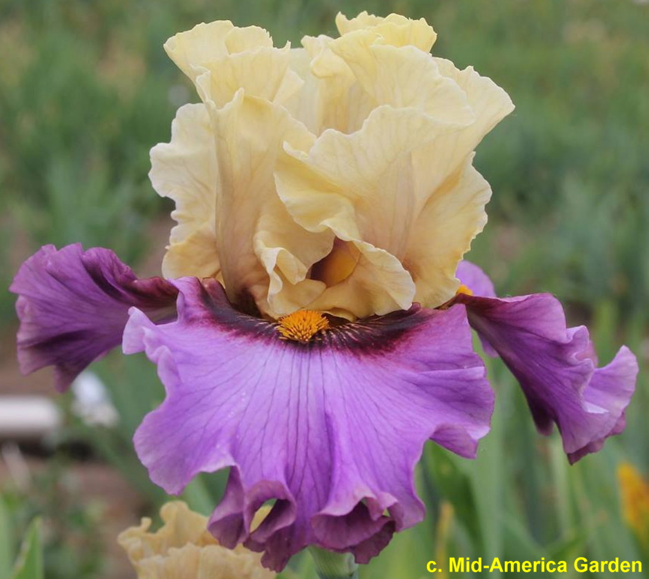 L’iris germanica “Punctuation” ha vessilli giallo-pesca chiaro, ali lavanda-viola, con striature rosso-viola intenso su entrambi i lati della barba, barbe arancioni, profumo dolce. Altezza 91 cm. Fioritura tardiva.