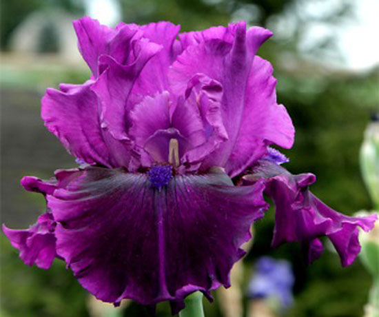 L’iris germanica “Purple Serenade” ha vessilli e ali viola porpora, barbe viola scuro. Altezza 94 cm. Fioritura da intermedia a tardiva.