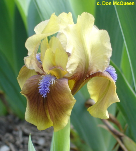 L’iris germanica “Wheel” ha vessilli gialli, ali marroni bordate di giallo; barba blu-viola. Altezza 25-30 cm. Fioritura intermedia.