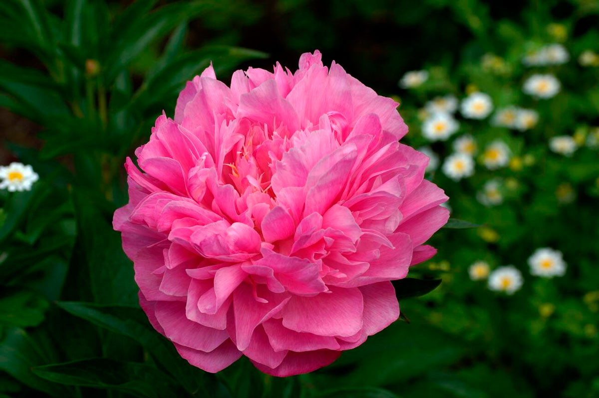La peonia lactiflora “Joker” ha un fiore doppio e pieno di color rosa acceso appena fiorisce, poi il centro diventa quasi bianco con punte rosa. Il profumo è assente e la fioritura è intermedia.