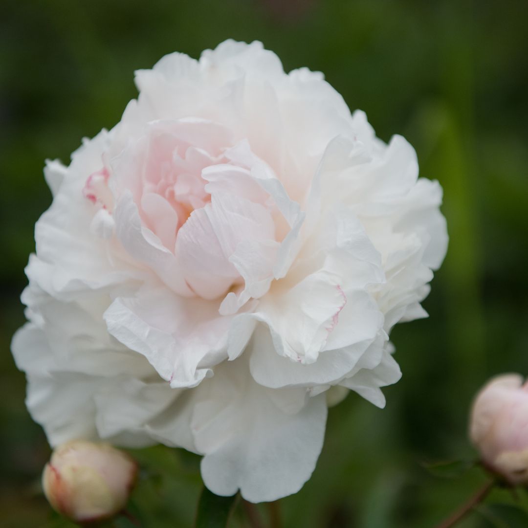 La peonia lactiflora “My Love” ha un fiore grande e completamente doppio che ricorda un fiore di rosa color rosa bianco perla con riverberi rosa pastello. Il profumo è leggero e la fioritura è intermedia.