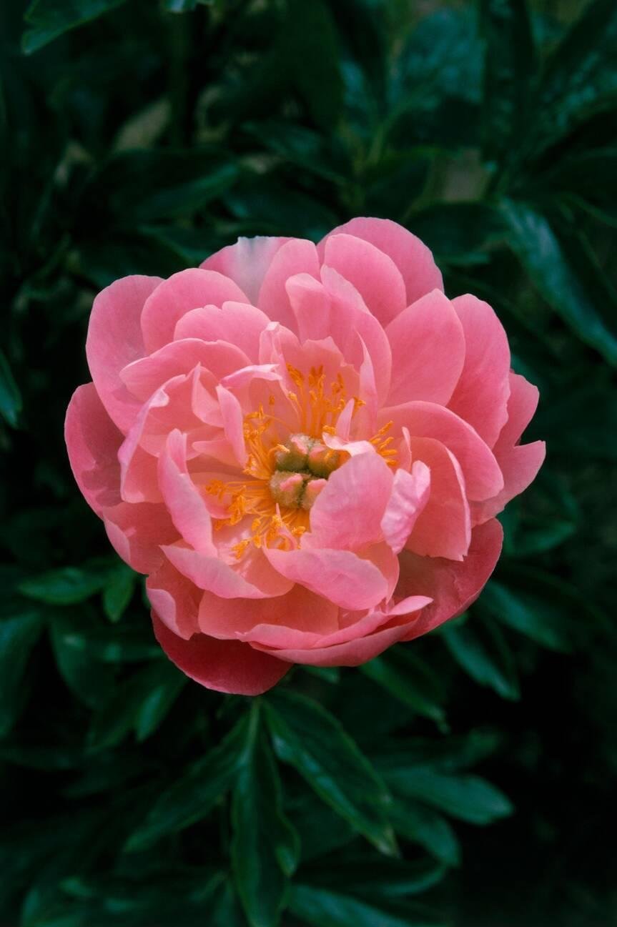 La peonia lactiflora “Pink Hawaiian Coral” ha un fiore semi doppio, molto grande,di color rosa corallo con centro dorato; con l’avanzare della fioritura il colore tende all’albicocca fino al crema. Il profumo è assente e la fioritura precoce.