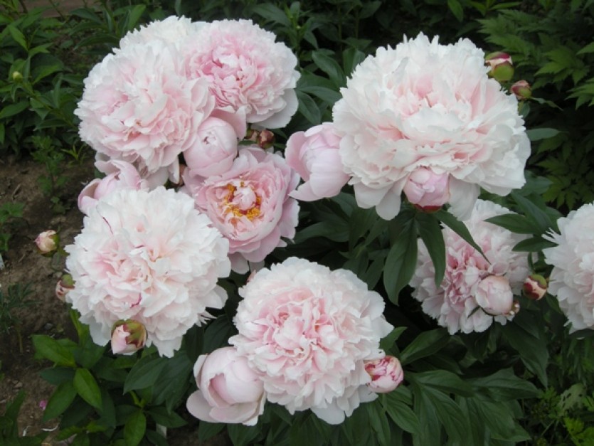 La peonia lactiflora “Reine Hortense” ha un fiore doppio, grande e pieno, ottimo per il reciso di un bel rosa con petali arruffati dai toni argentei sui bordi con casuali tocchi porpora. Ha un odore sgradevole e la fioritura è medio tardiva.