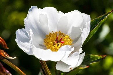 La peonia lactiflora “White Wings” ha un fiore semplice, grande che assomiglia al fiore di una rosa selvatica; di notte i fiori si chiudono aumentando la durata. È bianca con al centro un cuore di stami gialli. Il profumo è leggero e la fioritura è intermedia.