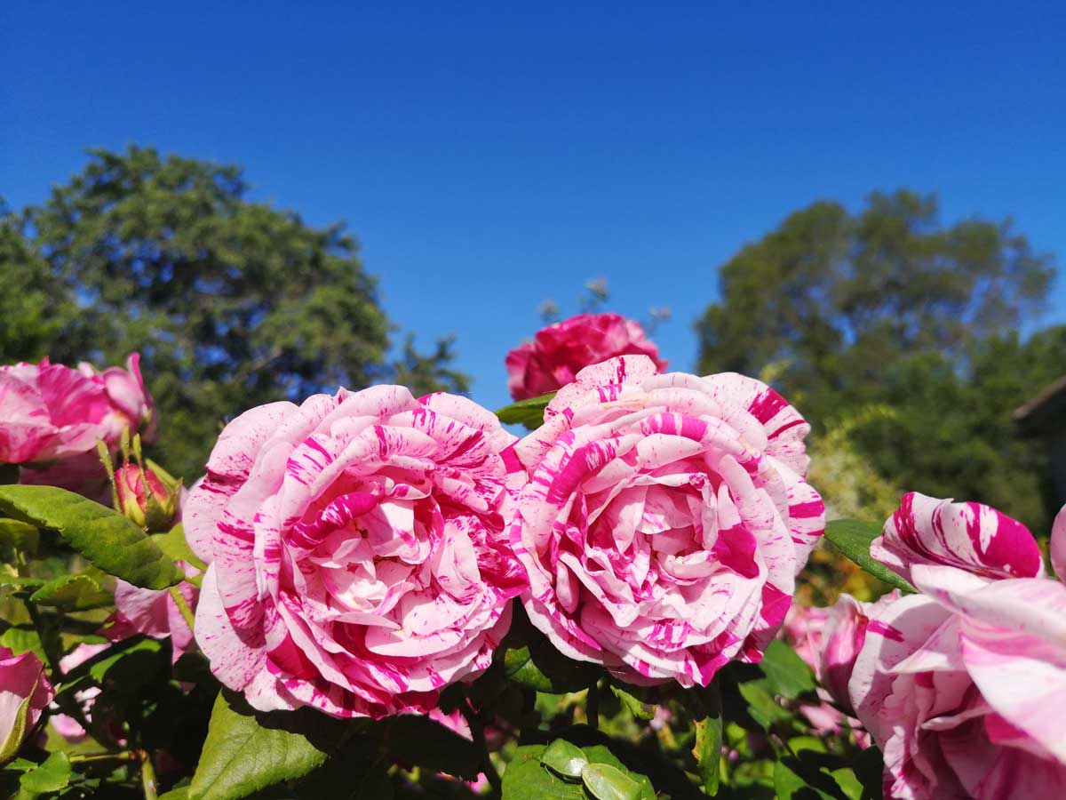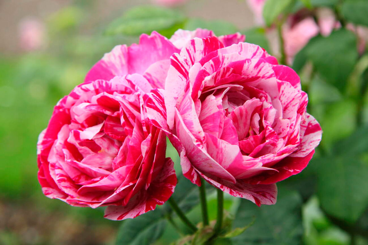 La Rosa “Ferdinand Pichard” è un Ibrido Perpetuo dai fiori grandi e doppi color rosso carminio screziati di bianco, molto profumati. Cresce cespugliosa e vigorosa. Altezza 150 cm, Larghezza 120 cm. Profumata. Fioritura ripetuta. Molto resistente alle malattie.
