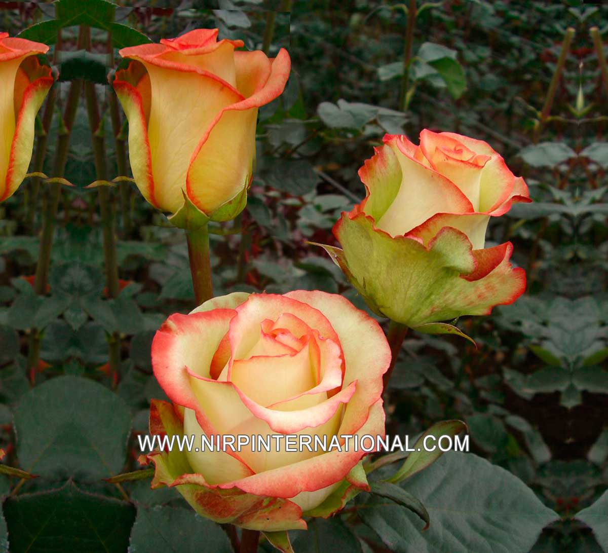 La Rosa rampicante grandi fiori rifiorente “Boheme®” ha fiori di 12 cm di diametro (30/35 petali) color giallo ambra bordato di rosso. Rampicante resistente alle malattie e dalla rifiorenza da maggio al gelo. Altezza 250 cm.